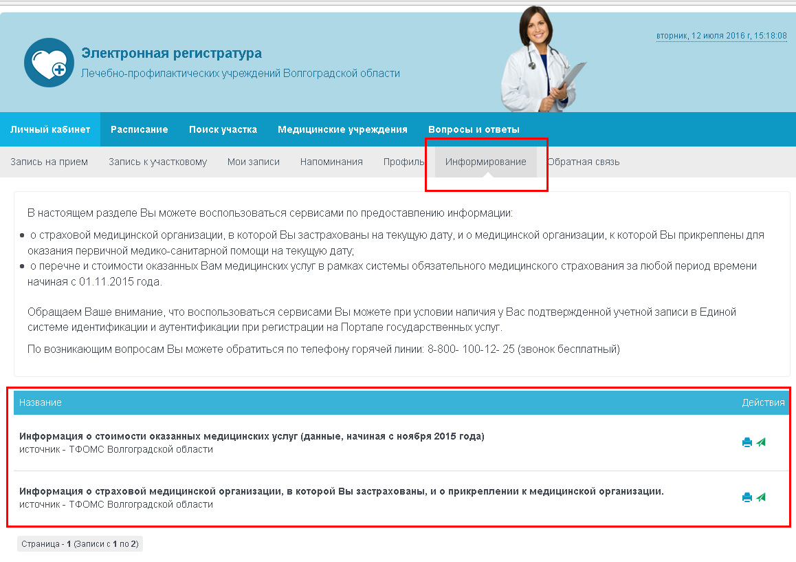 Личный кабинет пациента Уважаемые посетители сайта! В настоящее время Вы можете воспользоваться сервисами по предоставлению информации (информированию):