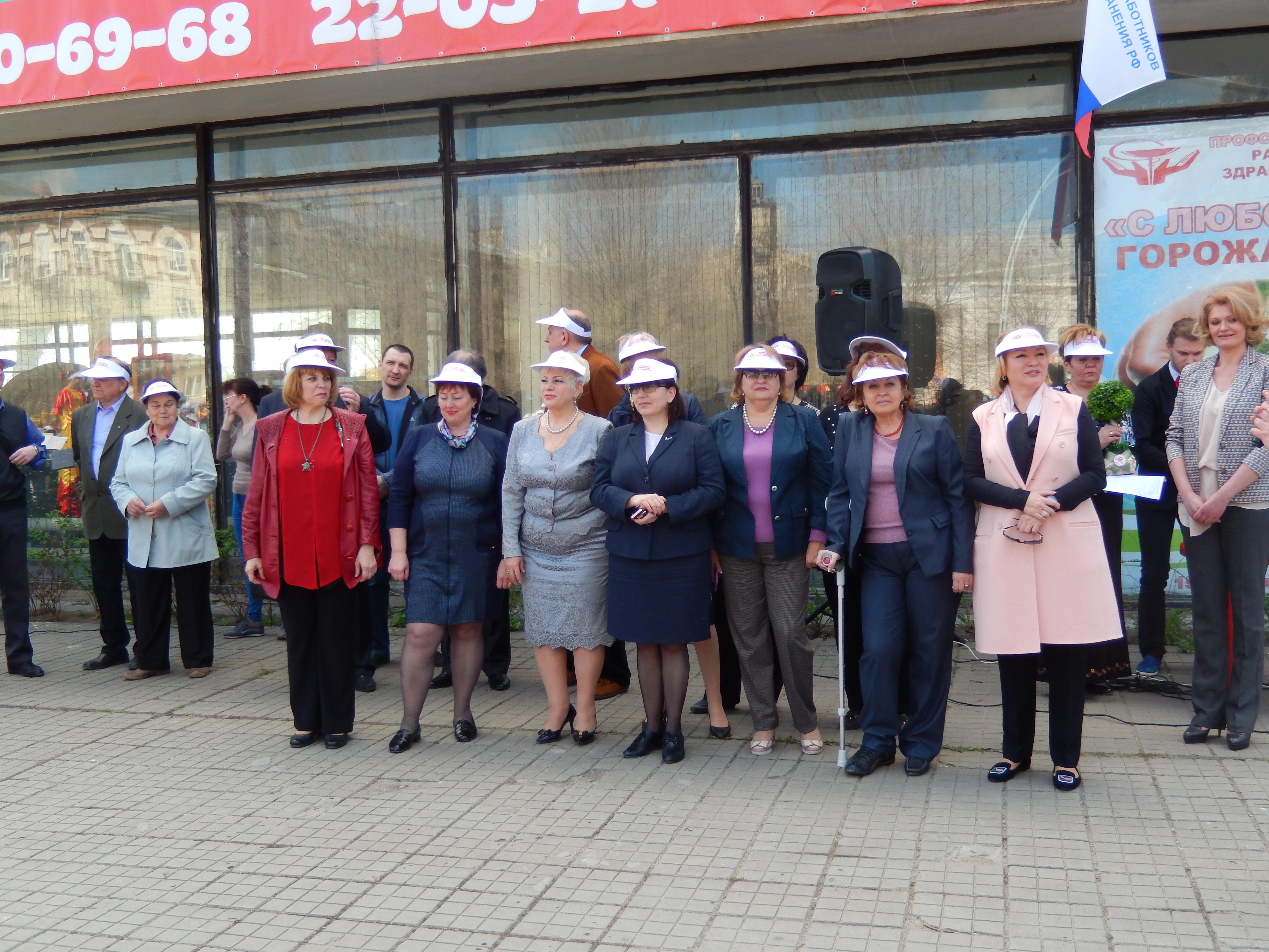 15 апреля 2016 года Т.В.Самарина и сотрудники «ТФОМС Волгоградской области» приняли участие в профсоюзной акции работников здравоохранения «С любовью к горожанам».